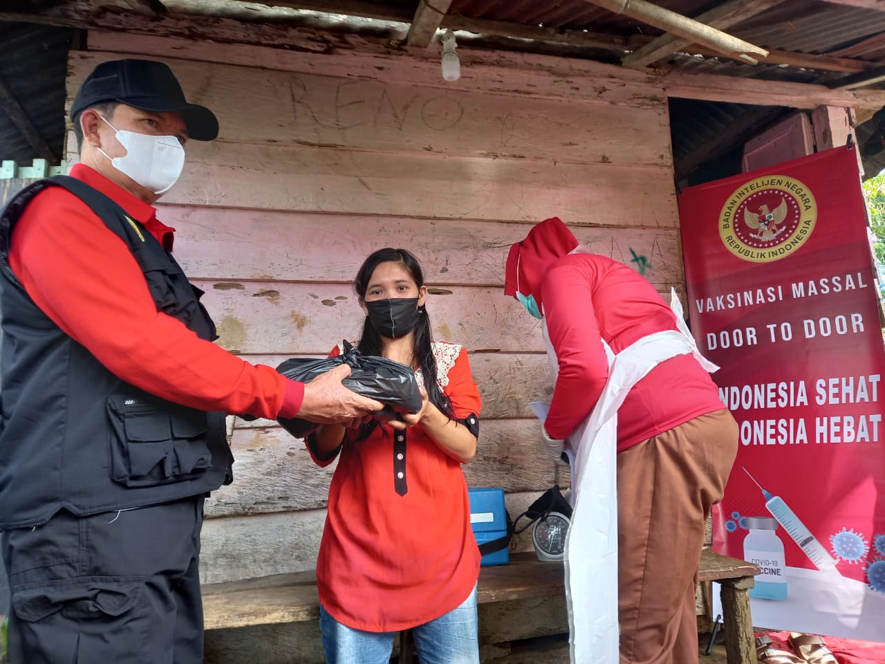 BIN Gelar Vaksinasi Massal dan Berbagi Sembako di Binduriang Rejang Lebong
